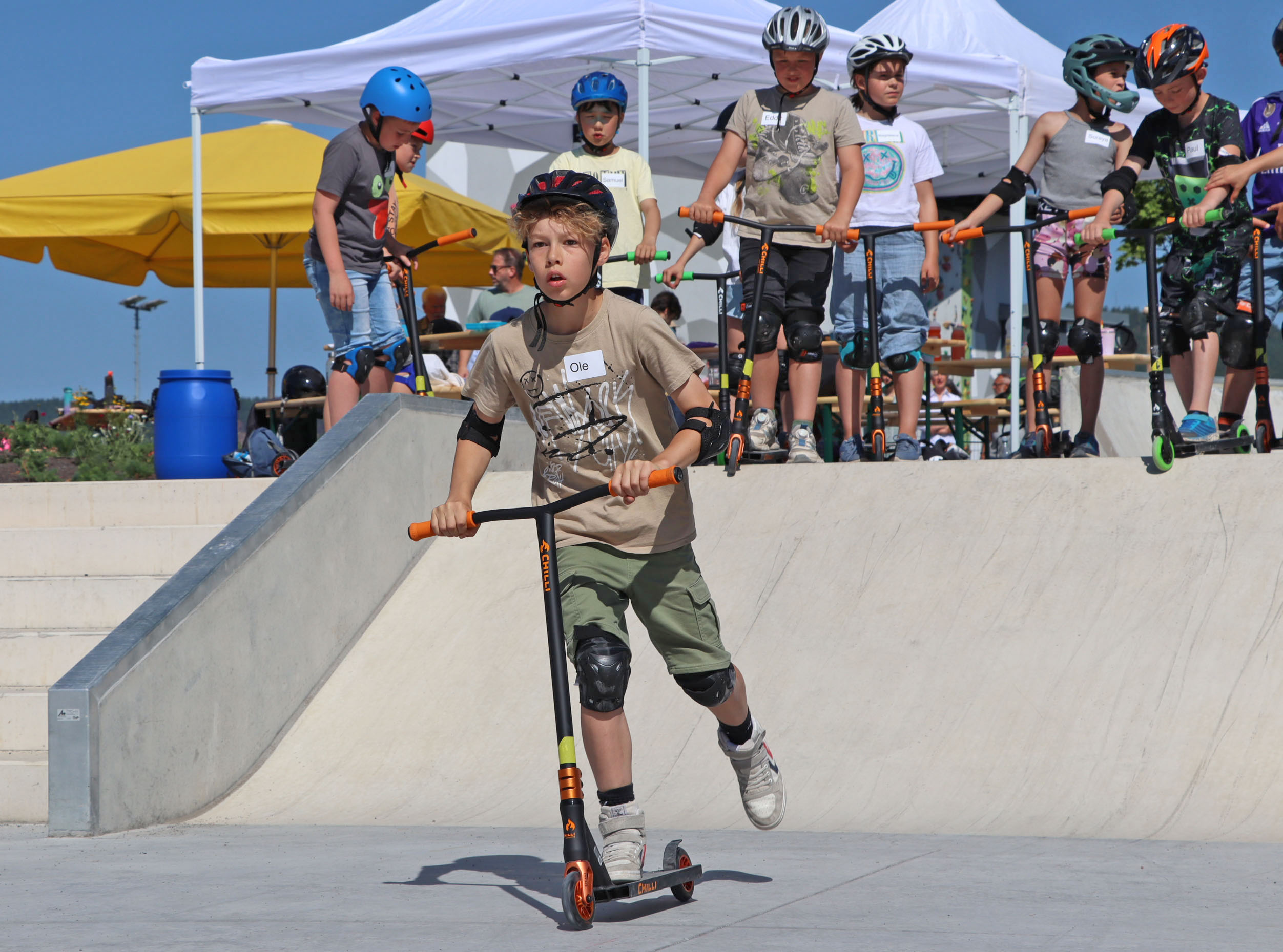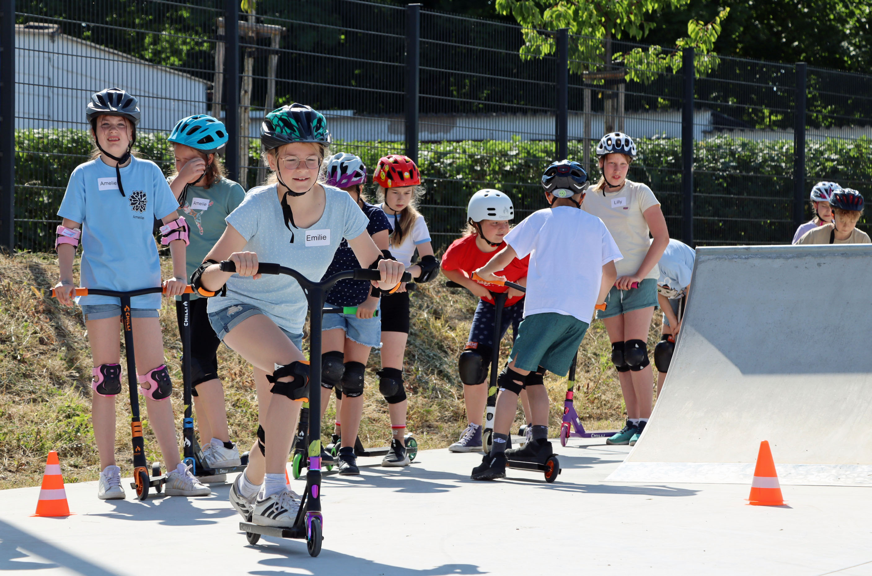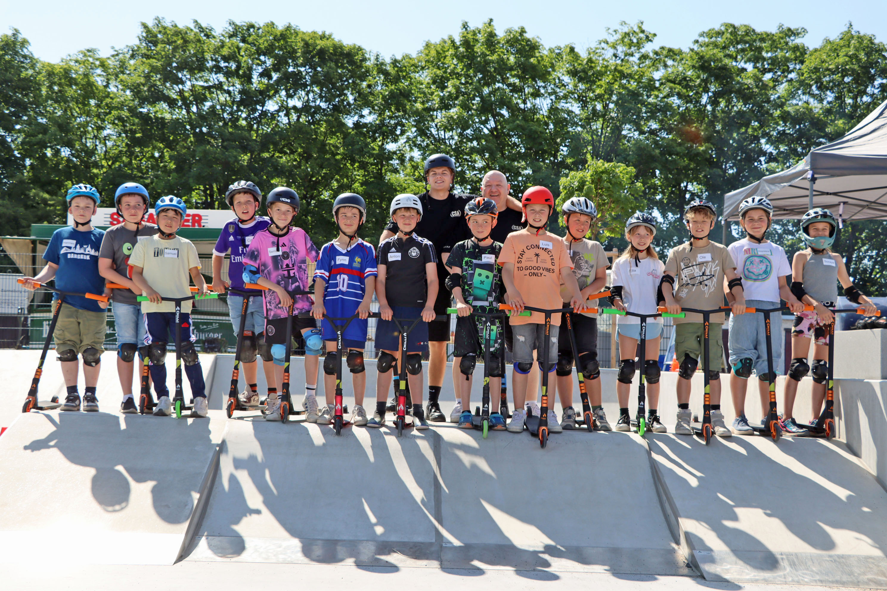 Das Areal lädt ein zum Ausprobieren, zum Entspannen, zum Wachsen. Es ist ein Ort der Gemeinschaft, des Miteinanders und der Freundschaft. Ob Pumptrack, Skaterpark, Calisthenics-Anlage, Streetball-Feld oder Slackline – vor allem die jungen Besucher waren begeistert. Bereits ab 9 Uhr morgens wurde der Skaterpark in Beschlag genommen. Viertklässler der Sonneberger Grundschulen hatten die Möglichkeit an einem Scooter-Kurs der renommierten „Campus Scooter Academy“ teilzunehmen. 30 Kinder der Grundschule Oberlind lernten dabei erste Tricks: vom richtigen Stand über Körperhaltung und Balanceübungen bis hin zu kleinen Sprüngen und dem Befahren der Rampen.