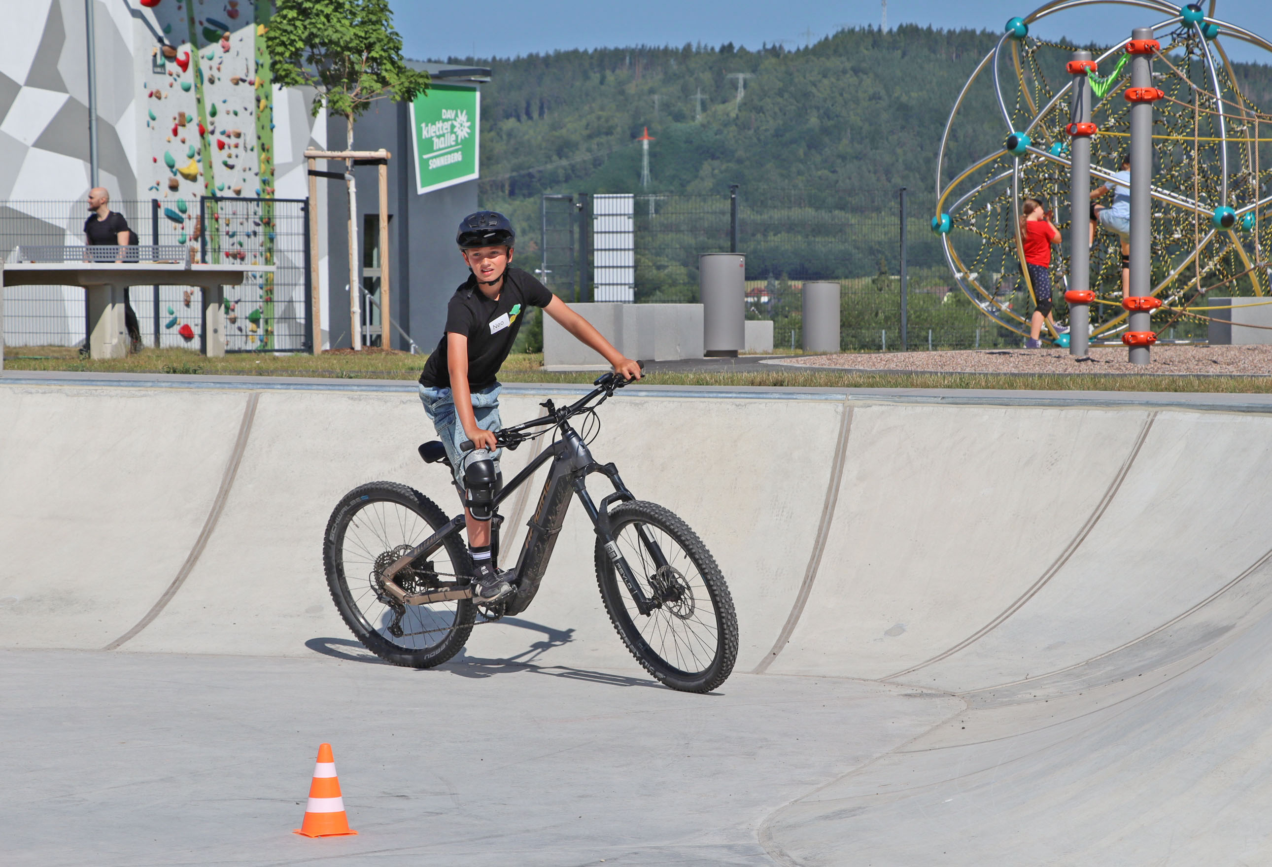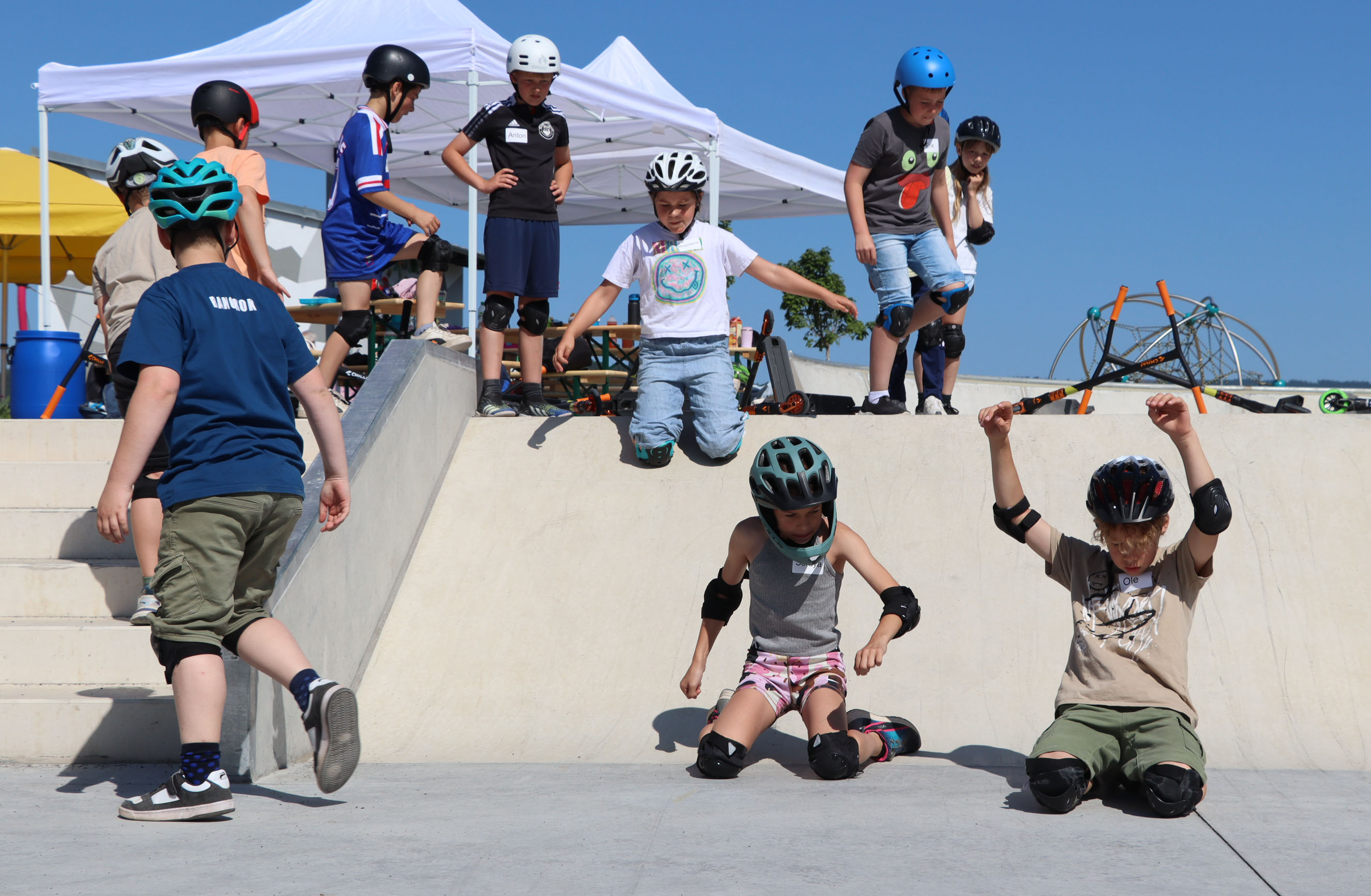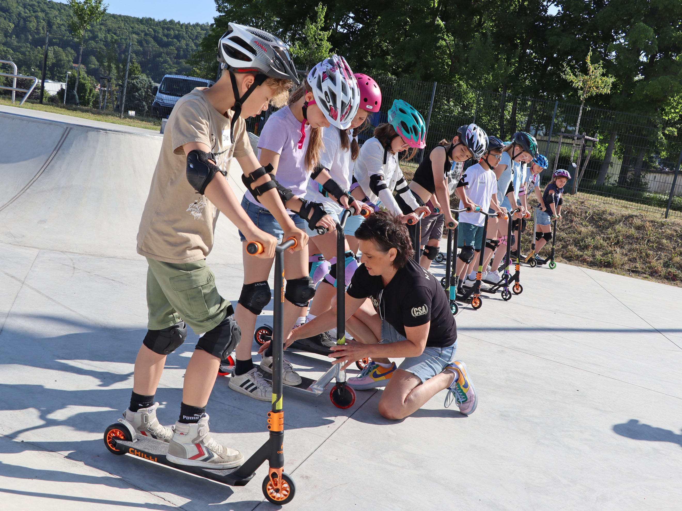 Das Areal lädt ein zum Ausprobieren, zum Entspannen, zum Wachsen. Es ist ein Ort der Gemeinschaft, des Miteinanders und der Freundschaft. Ob Pumptrack, Skaterpark, Calisthenics-Anlage, Streetball-Feld oder Slackline – vor allem die jungen Besucher waren begeistert. Bereits ab 9 Uhr morgens wurde der Skaterpark in Beschlag genommen. Viertklässler der Sonneberger Grundschulen hatten die Möglichkeit an einem Scooter-Kurs der renommierten „Campus Scooter Academy“ teilzunehmen. 30 Kinder der Grundschule Oberlind lernten dabei erste Tricks: vom richtigen Stand über Körperhaltung und Balanceübungen bis hin zu kleinen Sprüngen und dem Befahren der Rampen.