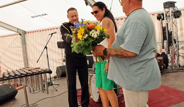 "Das alles hier werd' ich vermissen", gibt sie mit Blick auf den Schießhausplatz, auf seine Buden, Fahrgeschäfte und Besucher zu. Ein herzliches Dankeschön bekam sie stellvertretend für alle Schausteller von René Warkus und Andreas Müller überreicht - dafür, dass sie so viele Jahre alle herzlich empfangen und begleitet hat. Blumenstrauß und Rührung inklusive! Wir sagen ebenfalls Danke dafür!