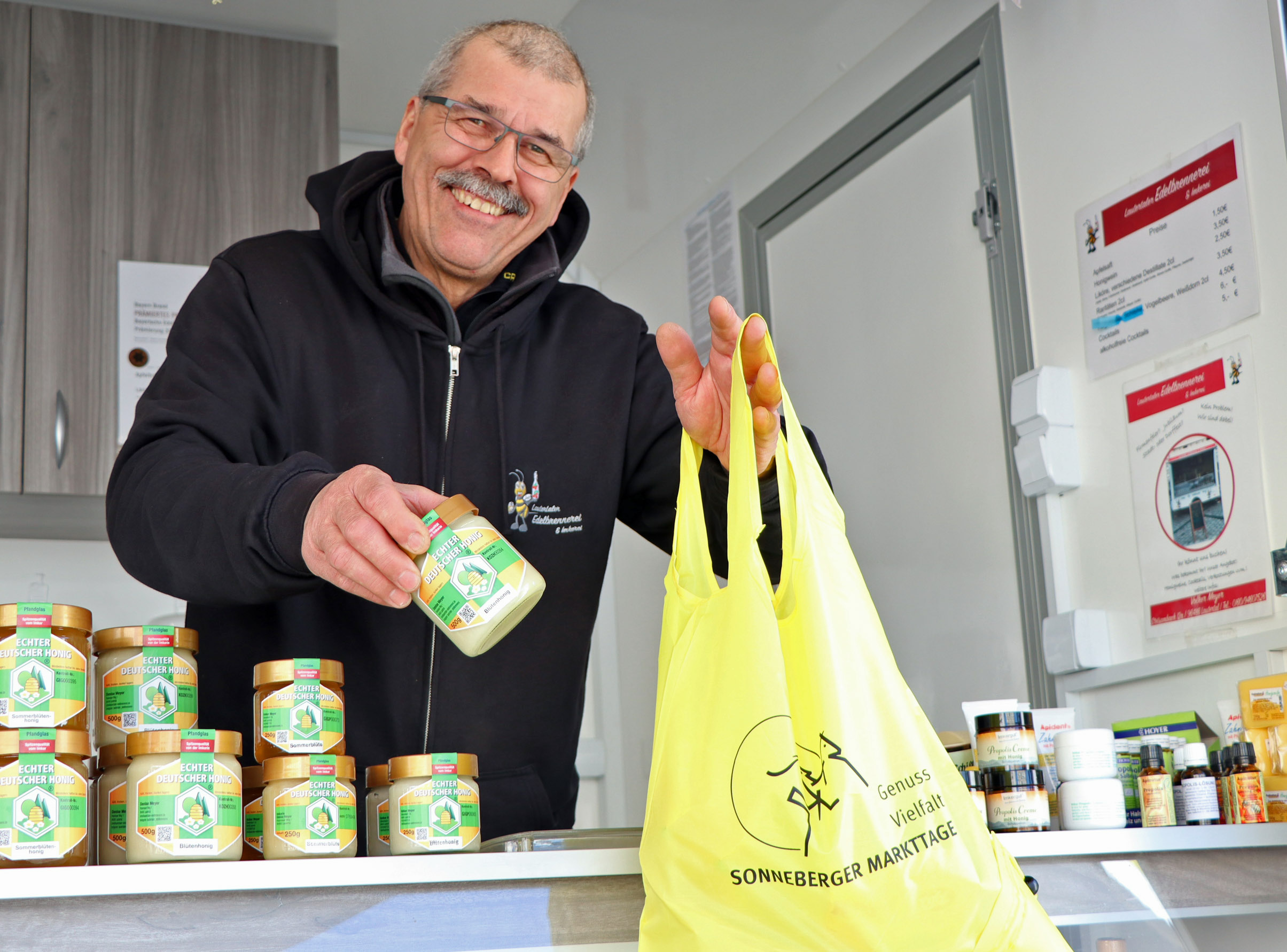 Bei strahlendem Sonnenschein und frühlingshaften Temperaturen wurde der Bahnhofsplatz zum Hauptanlaufpunkt in der Sonneberger Innenstadt. Zahlreiche Besucher nutzten die Gelegenheit, durch die Marktstände zu schlendern, regionale Produkte zu probieren und mit den Händlern ins Gespräch zu kommen. Besonderen Anklang fanden die neuen Marktbeutel der Spielzeugstadt – natürlich in leuchtendem Gelb. Diese wurden von den Markthändlern als kleine Aufmerksamkeit an ihre Kunden verteilt und erfreuten sich großer Beliebtheit.