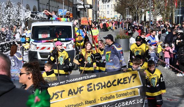 Doch nicht nur Karneval, sondern auch der Sport spielte eine Rolle: Die Jugendgruppe Eishockey „Coburger Cobras“, begleitet vom SonneBad, nutzte den Umzug, um auf ihre Nachwuchsförderung aufmerksam zu machen. Ebenso präsentierten der Kreissportbund und die Sport AG des Hermann-Pistor-Gymnasiums die sportliche Vielfalt Sonnebergs.