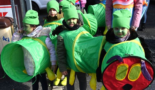 Für märchenhafte und naturverbundene Momente sorgten die Kitas der Stadt. Die „Kleine Raupe Nimmersatt“, die Tiere der Arche Noah oder die Darstellung der vier Elemente – die Kitas Spatzennest, Arche Noah und Villa Kunterbunt bewiesen mit viel Liebe zum Detail ihre Kreativität. Auch die Grundschulen Sonnebergs glänzten mit ihren Mottos. Besonders die Schüler der Wolkenrasen-Grundschule sorgten für Begeisterung: Von einem Transporter aus ließen sie Kamelle regnen und erinnerten damit an die großen Narrenhochburgen.
