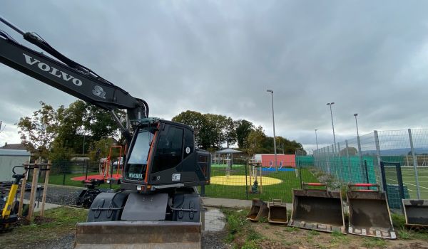 Doch noch ist das Kinder- und Jugend-Freizeitareal eine Baustelle und deshalb zu Recht für den Publikumsverkehr geschlossen und eingezäunt. Weiterhin sind Tiefbauarbeiten mit dem Bagger für den sogenannten Pumptrack (künstlich angelegter Rundkurs mit Steilkurven und Wellen für Mountainbiker) im Gange, wird Mutterboden aufgeschüttet, glattgezogen und mit Grassamen angesät, Borde werden gesetzt und Wege gepflastert. Eine Boulder-Wand soll in den nächsten Wochen noch entstehen. Erst, wenn alles wirklich fertig ist, kann der TÜV die Anlage abnehmen.