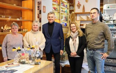 Angelika Karl ließ die vielen Jahre – fast 40 ist sie dem Geschäft bereits treu und selbst eigentlich schon im Ruhestand – Revue passieren. Zu DDR-Zeiten gehörten die im Laden verkauften Waren zu den gefragtesten überhaupt: Töpferware aus Römhild, Plauener Spitze oder Glasartikel aus Lauscha ließen die Menschen Schlange stehen. Ein Laden mit Sachen „fürs Herz“ eben. Seitdem haben sich sowohl das Einkaufsverhalten, die Abnahmebedingungen für kleine Einzelhändler als auch die Nachfrage nach Kunstgewerbeartikeln stark verändert, weiß Angelika Karl. „Das ist der Lauf der Zeit, den kannst Du nicht aufhalten. Jammern nützt nichts – im Gegenteil, wir denken immer an die schöne Zeit hier zurück“, sagte sie beim Treff mit IHK und Stadtverwaltung.