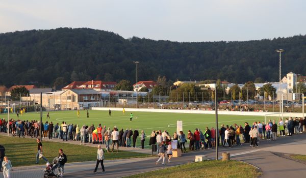 „Gemeinsam, fränkisch, stark…“ mit diesem Song von Musikschullehrerin Kristina Jakobs und den Böllerschüssen der Privilegierten Schützengesellschaft Schießhaus Sonneberg 1851 e. V. startete am Mittwochabend, 18. September, die Neuauflage des Interzonenspiels von 1949 zwischen Sonneberg und Neustadt bei Coburg.
