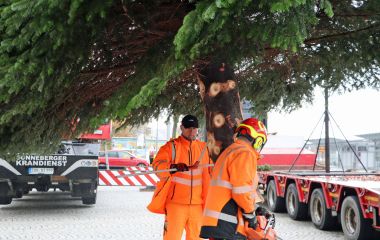 Bei der Auswahl der Weihnachtsbäume gibt es viel zu beachten, etwa die Länge wegen des Transportes oder die Erreichbarkeit auf dem Grundstück mit der entsprechenden Technik. „Wir haben wieder sehr schöne Exemplare gefunden, aber es wird tatsächlich immer schwieriger“, resümiert für diese Saison Mario Otto vom Bauhof. Danke jedenfalls an alle, die für Weihnachten 2025 einen Baum zur Verfügung gestellt und an alle, die zum Gelingen beigetragen haben.