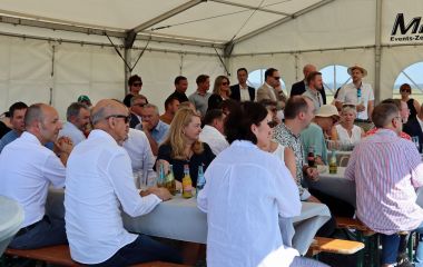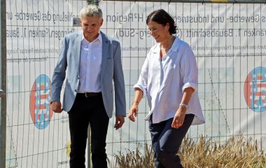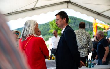 Zahlreiche Vertreterinnen und Vertreter aus Politik, Wirtschaft, Planung und Verwaltung kamen auf Einladung der Stadt am frühen Nachmittag an Ort und Stelle zusammen, um diesen Meilenstein zu feiern – darunter auch Thüringens Wirtschaftsministerin Colette Boos-John. Sie dankte in einer kleinen Ansprache „allen, die den Mut gehabt haben, dieses Projekt durchzuboxen“.