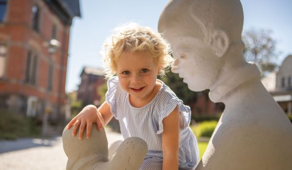 Ergänzt wird diese Station mit den Plastiken des Bildhauers Otto Keil, ehemals Direktor des Sonneberger Spielzeugmuseums; seine „Spielenden Kinder“.