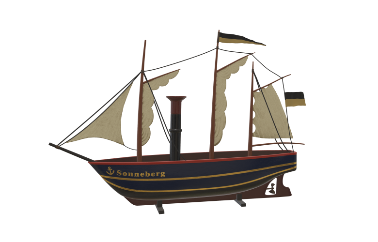 Begib' Dich mit dem virtuellen Segler auf Zeitreise: Einst war die Sonneberger Region als richtige Spielschiff-Werft bekannt und standen unterschiedliche Boote, Fregatten und andere Schiffe in den Katalogen der Spielzeugverleger. Hör' rein und lass' den Segler per Augmented Reality (AR) auf dem Wasser schwimmen!
