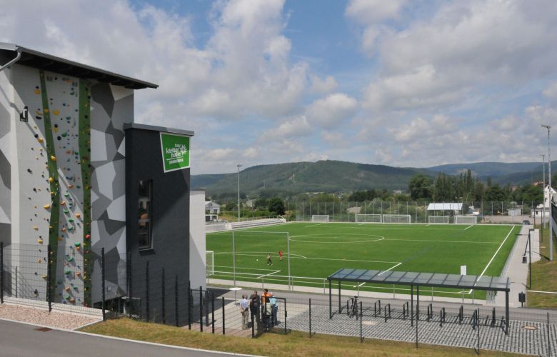 Sonneberg hat auf dem Weg zu einem wohl deutschlandweit einmaligen Sportkomplex bisher viele Meilensteine absolviert. Der Neubau des Funktionsgebäudes mit Kassenhaus und Kletteranlage wurde bereits im September 2020 eröffnet. Im Juni 2021 folgte dann die Einweihung des Kunstrasenplatzes.